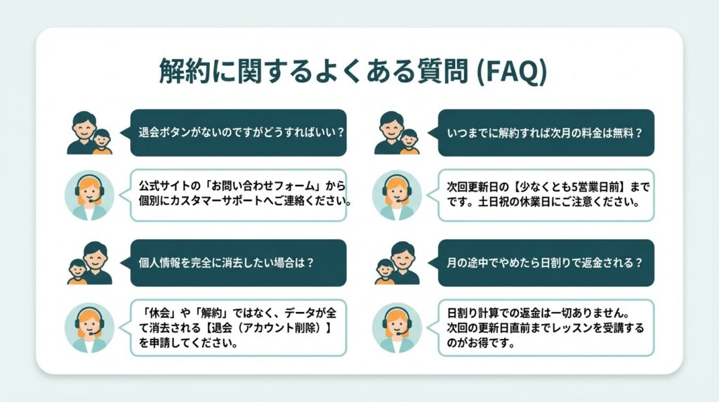 スムーズかつ確実にボーダーリンク英会話の解約を完了させるためにも、ここでよくある質問とその答えをしっかりと確認しておきましょう。