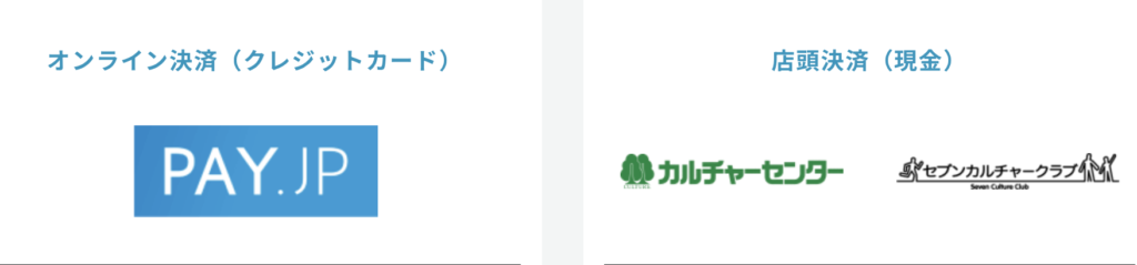 支払い方法は、クレジットカード決済とカルチャーセンター店舗での現金決済の2種類から選べます。
