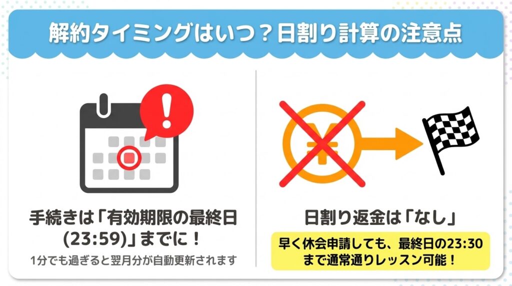 DMM英会話の解約タイミングはいつ?日割り計算の注意点
