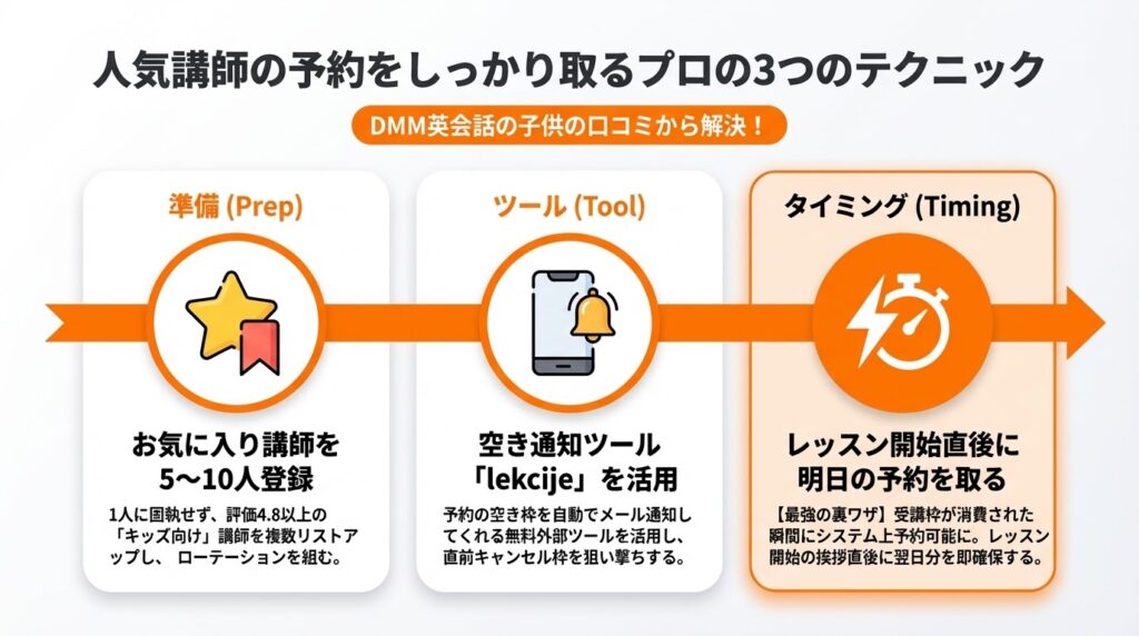 DMM英会話の子供の口コミから解決!人気講師の予約をしっかり取るプロの3つのテクニック