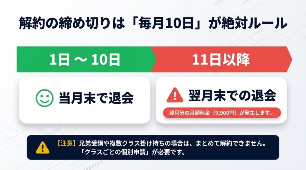 解約には「毎月10日」という非常に重要な締め切りルールが存在します。