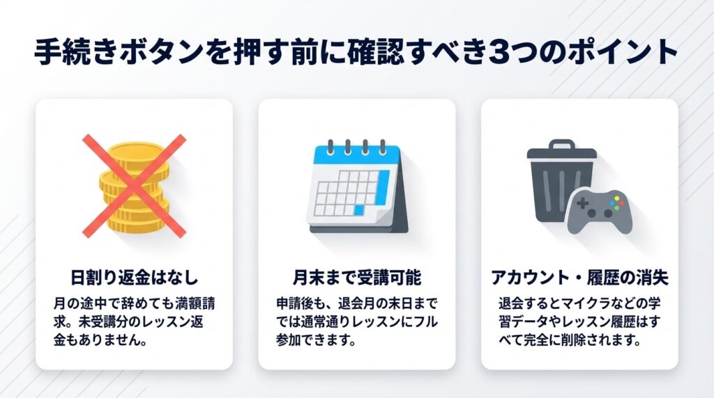 eスポーツ英会話の退会手続きをする前に、いくつか知っておくべき注意点があります。