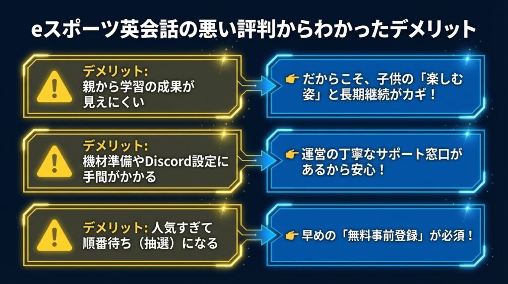 | eスポーツ英会話のメリット | eスポーツ英会話のデメリット |
