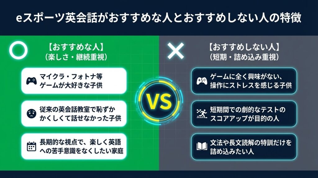 - eスポーツ英会話がおすすめな人とおすすめしない人の特徴