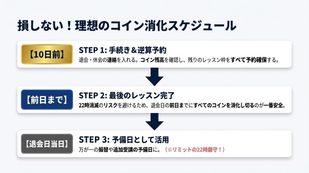 退会当日まで:残りのレッスンコインを計画的に消化