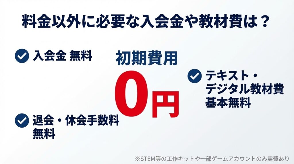 • 入会金や教材費などの初期費用がかからないことがわかる
