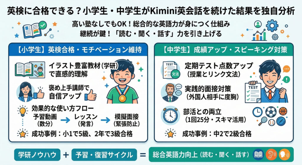 • 小学生や中学生が継続(続けた結果)したときの具体的な英検効果