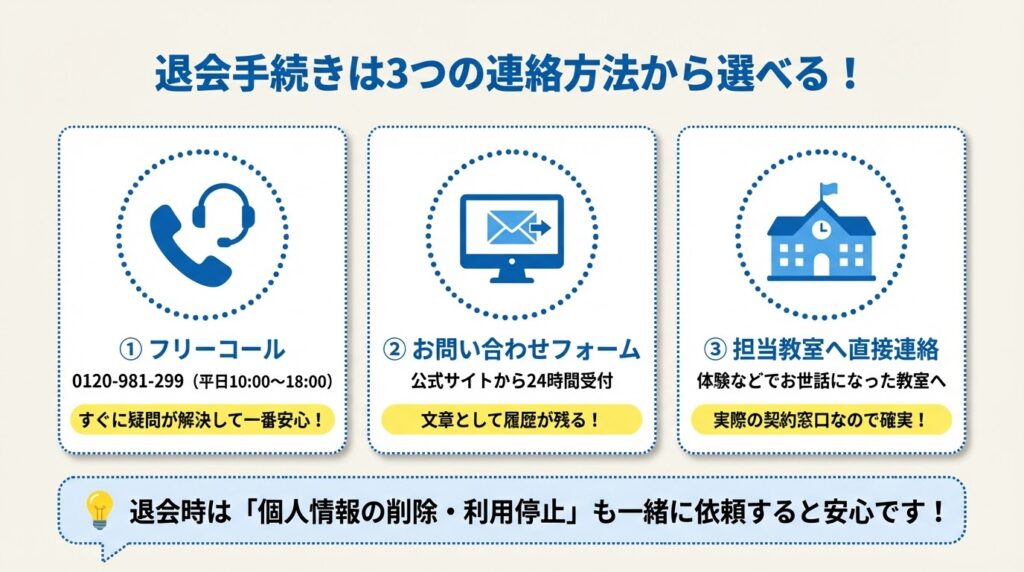 教室とのご縁を大切にしつつ、勇気を出して直接連絡をするのが、結果的に一番早く解約手続きが終わる方法です。