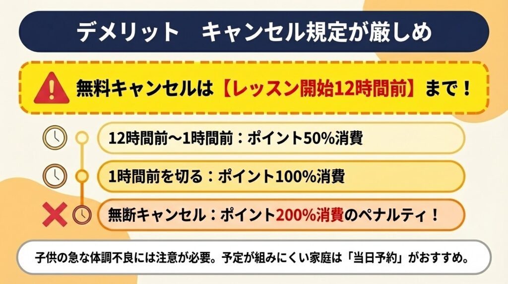 少し厳しく感じるかもしれませんが、これは講師の待機時間を減らし、質の高いレッスンを維持するためのルールなんですね。