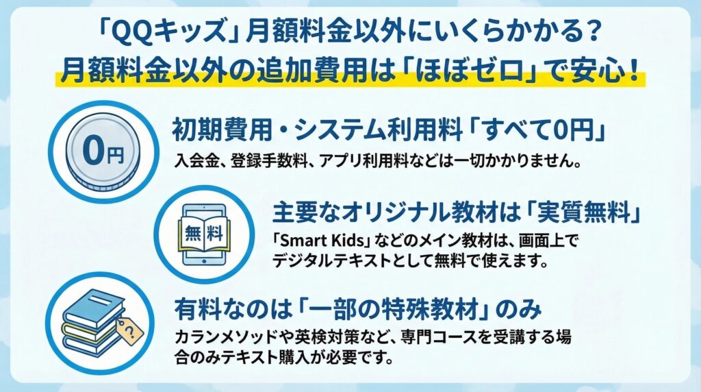 - 教材費や入会金など、月額以外にかかる費用の有無