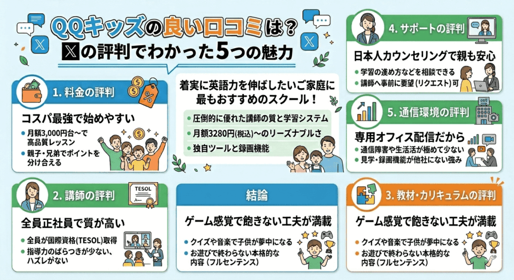 QQキッズの良い口コミは?Xの評判でわかった5つの魅力