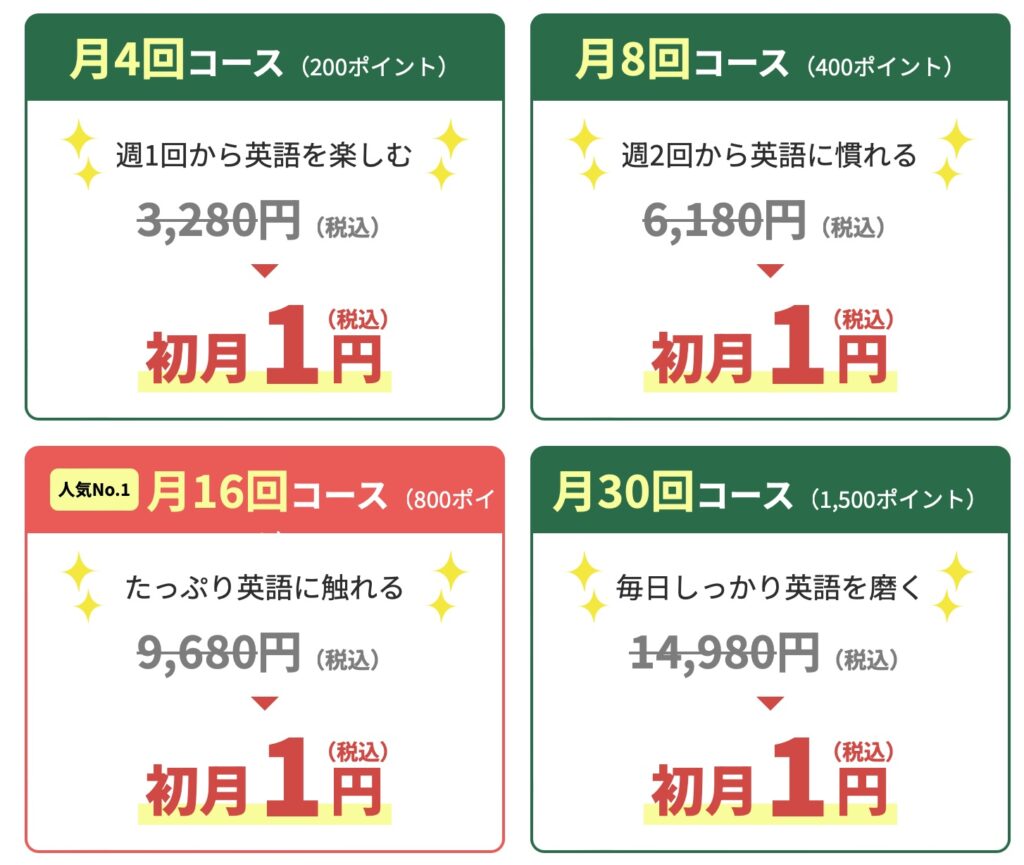 | ネイティブキャンプ | 無制限 | 月7,480円 |