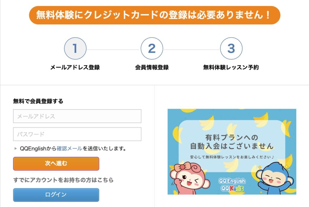 QQキッズの無料体験申し込み手順【クレカ登録不要で安心】
