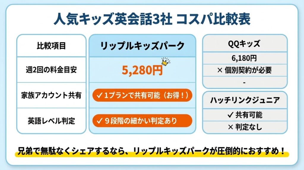 - QQキッズやハッチリンクジュニアとの料金コスパ比較